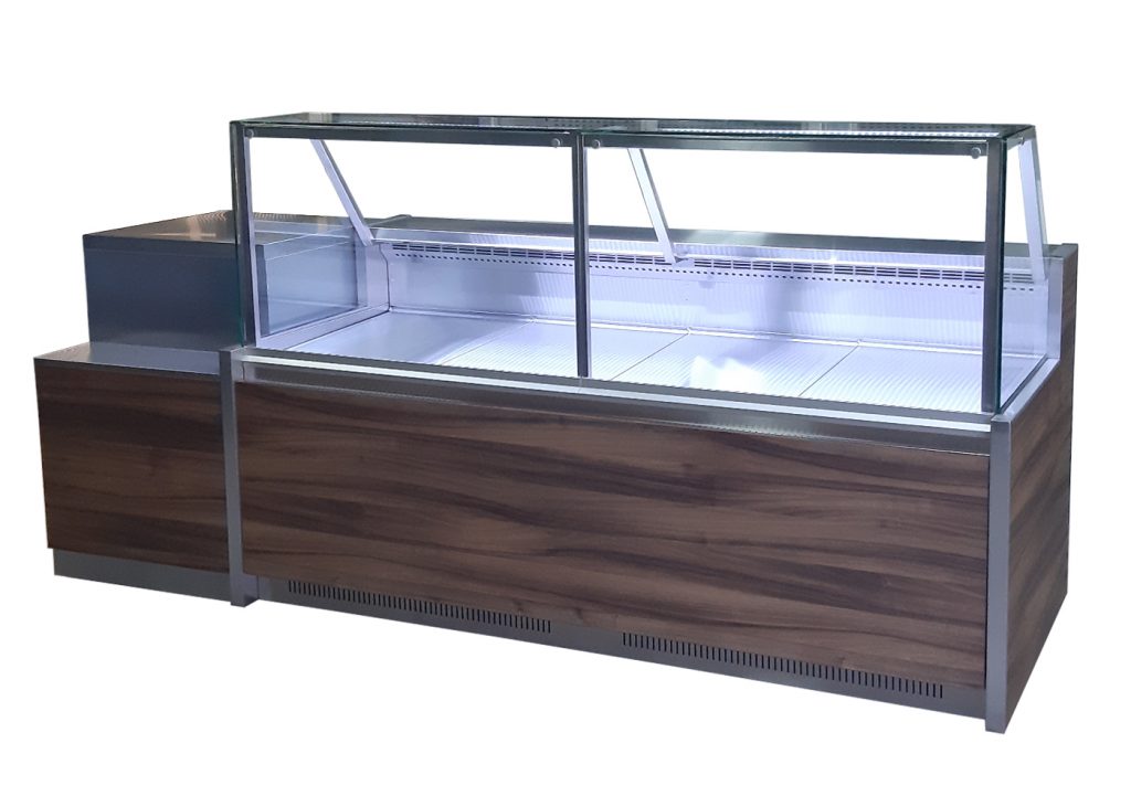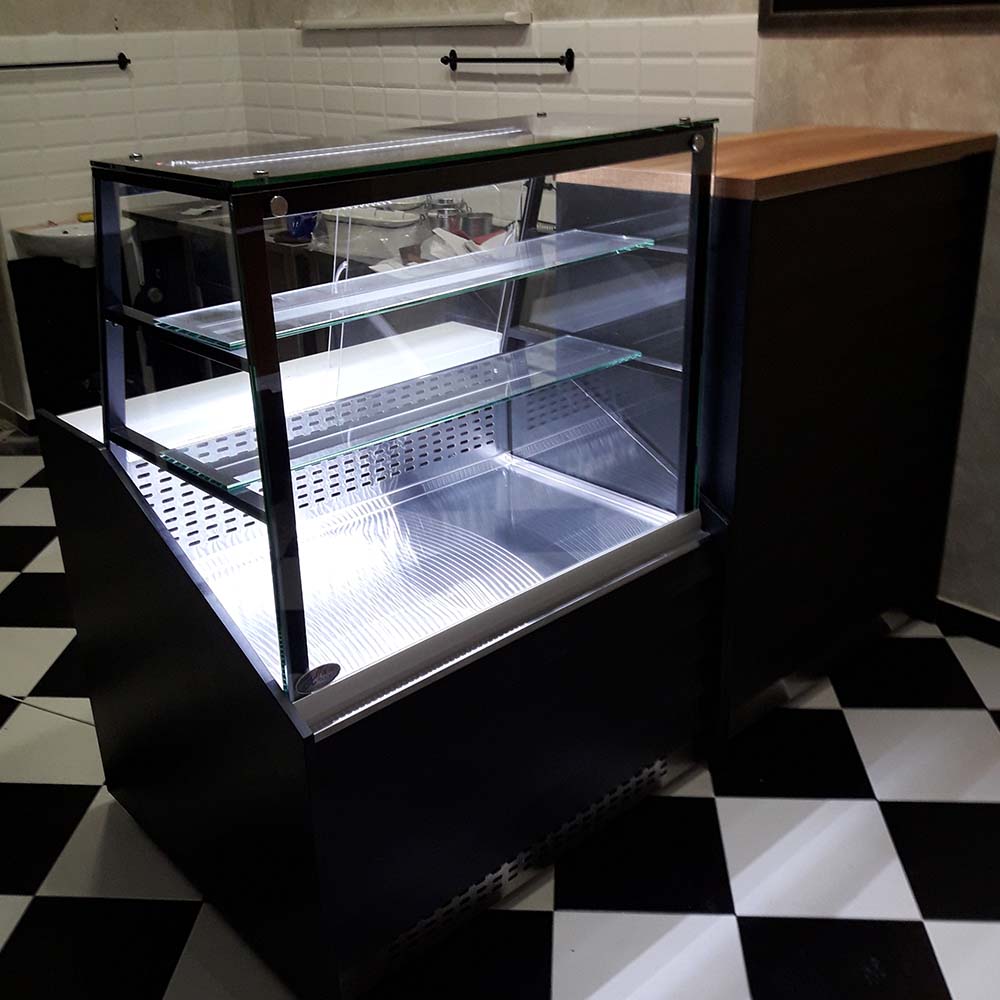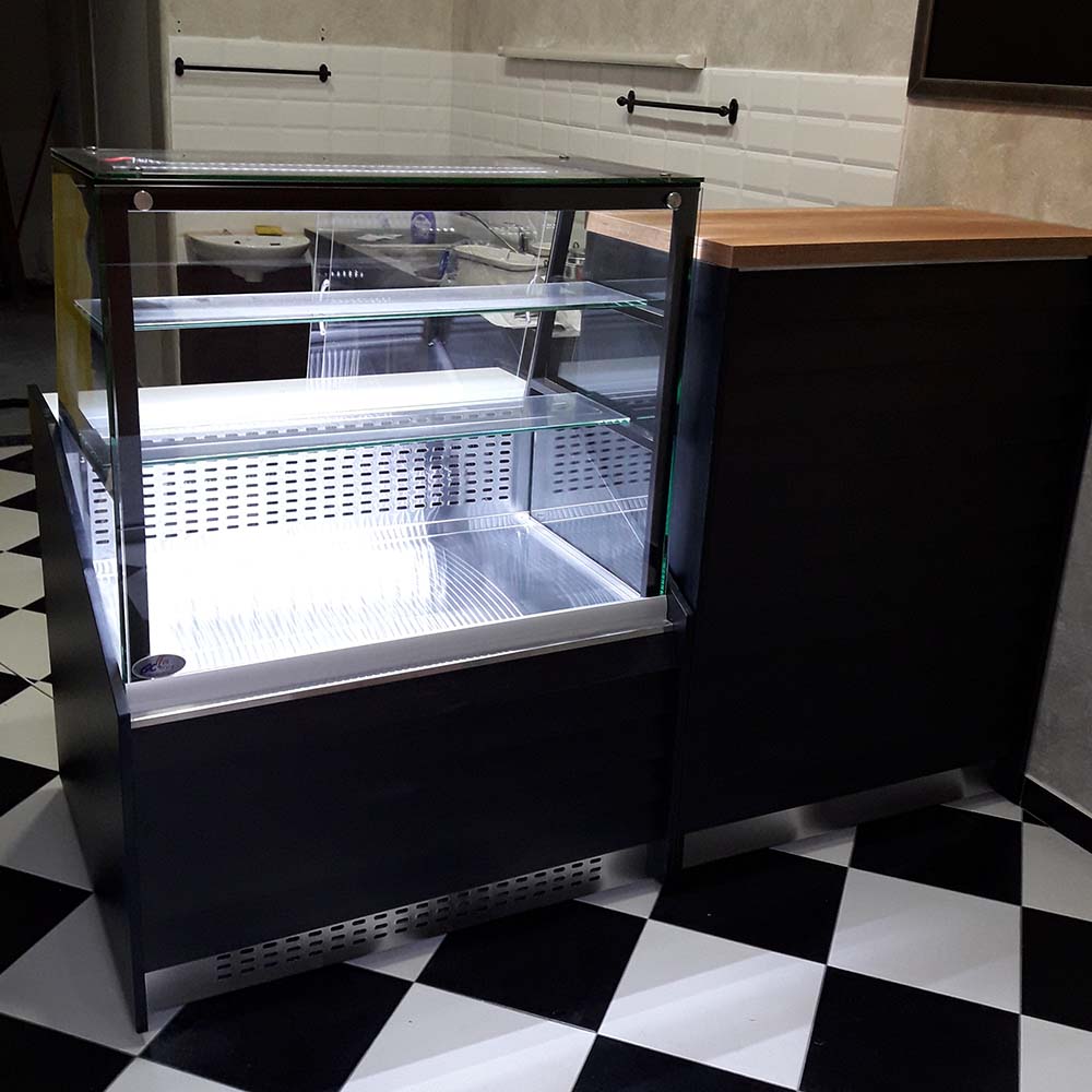Rashladna vitrina BOXY modernog dizajna, najčešće korišćena u poslastičarnicama kao i lokalima brze hrane. Boja po izboru kupca.