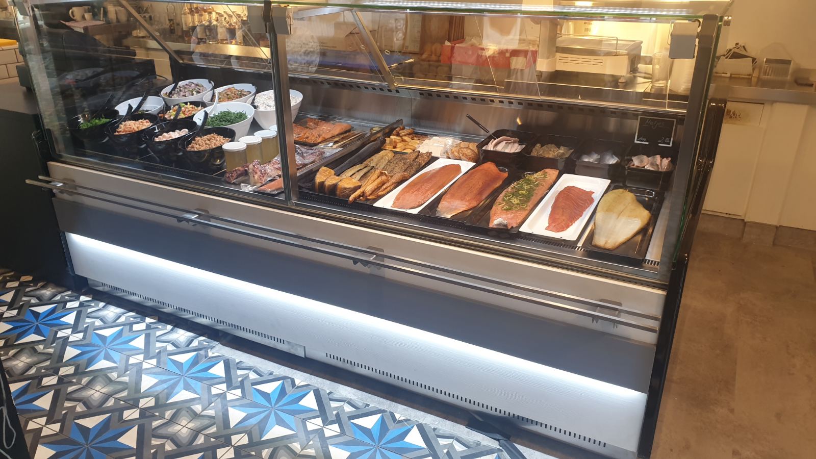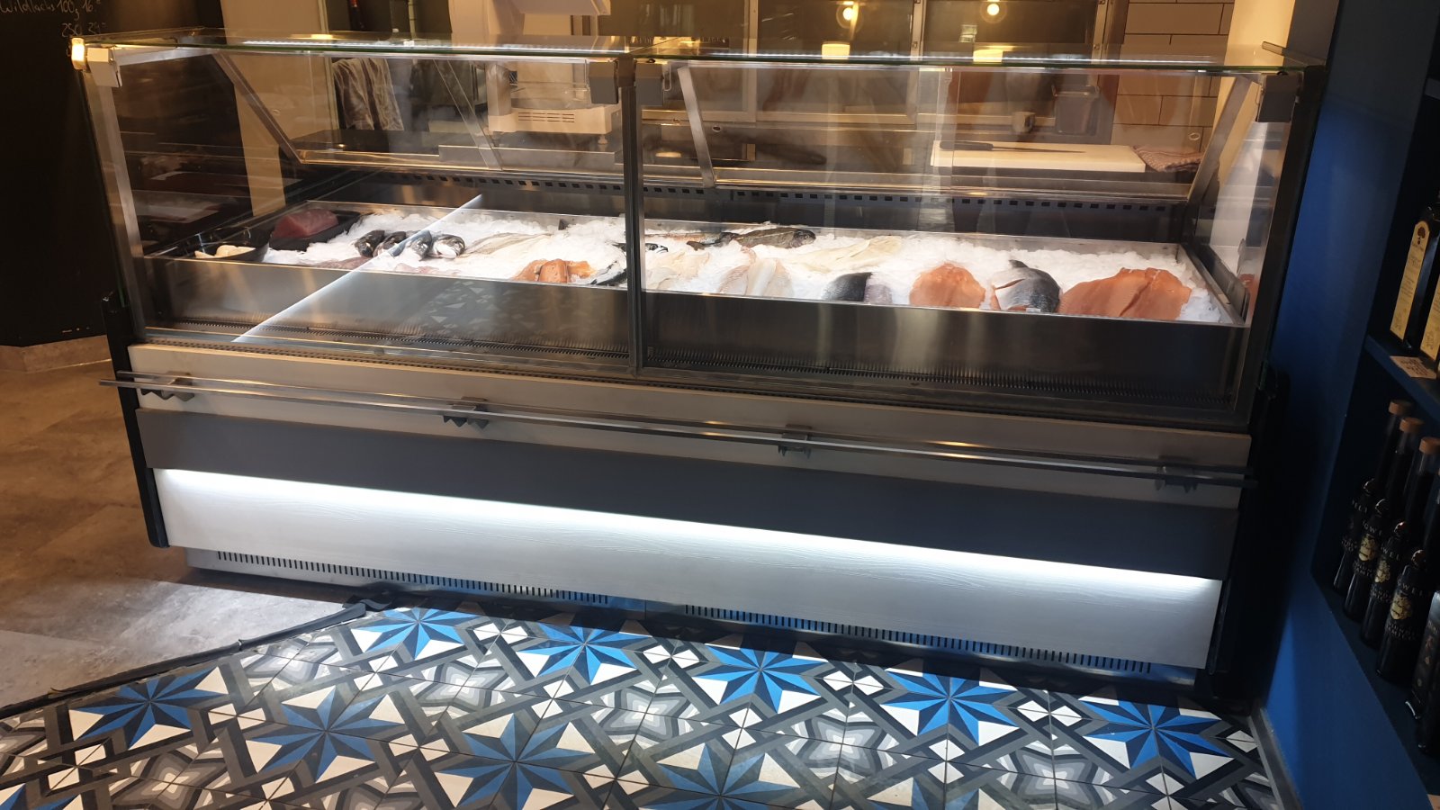Rashladna vitrina F-SLANESH modernog dizajna, najčešće korišćena u marketima za hranu čuvanu na ledu (riba). Model može biti modifikovan za čuvanje i druge standardne robe-sveže meso, sir, suhomesnati proizvodi… Boja po izboru kupca.